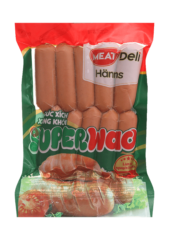 Xúc xích xông khói Superwao MEATDeli là một trong những sản phẩm chế biến từ thịt gà của thương hiệu này. Sản phẩm không chỉ thỏa mãn nhu cầu về một món ăn nhanh gọn, tiện lợi mà còn đảm bảo về chất lượng dinh dưỡng, mang đến bữa ăn giàu protein và năng lượng.